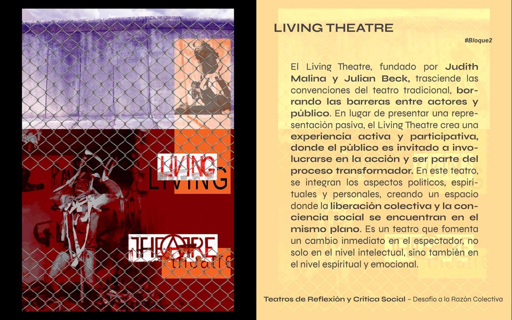 Aquí, la escena no es espectáculo, sino territorio de lucha. Brecht, el teatro político y el Living Theatre convierten el arte en un acto de conciencia, un lugar donde lo real se pone en crisis y el espectador es llamado a actuar.