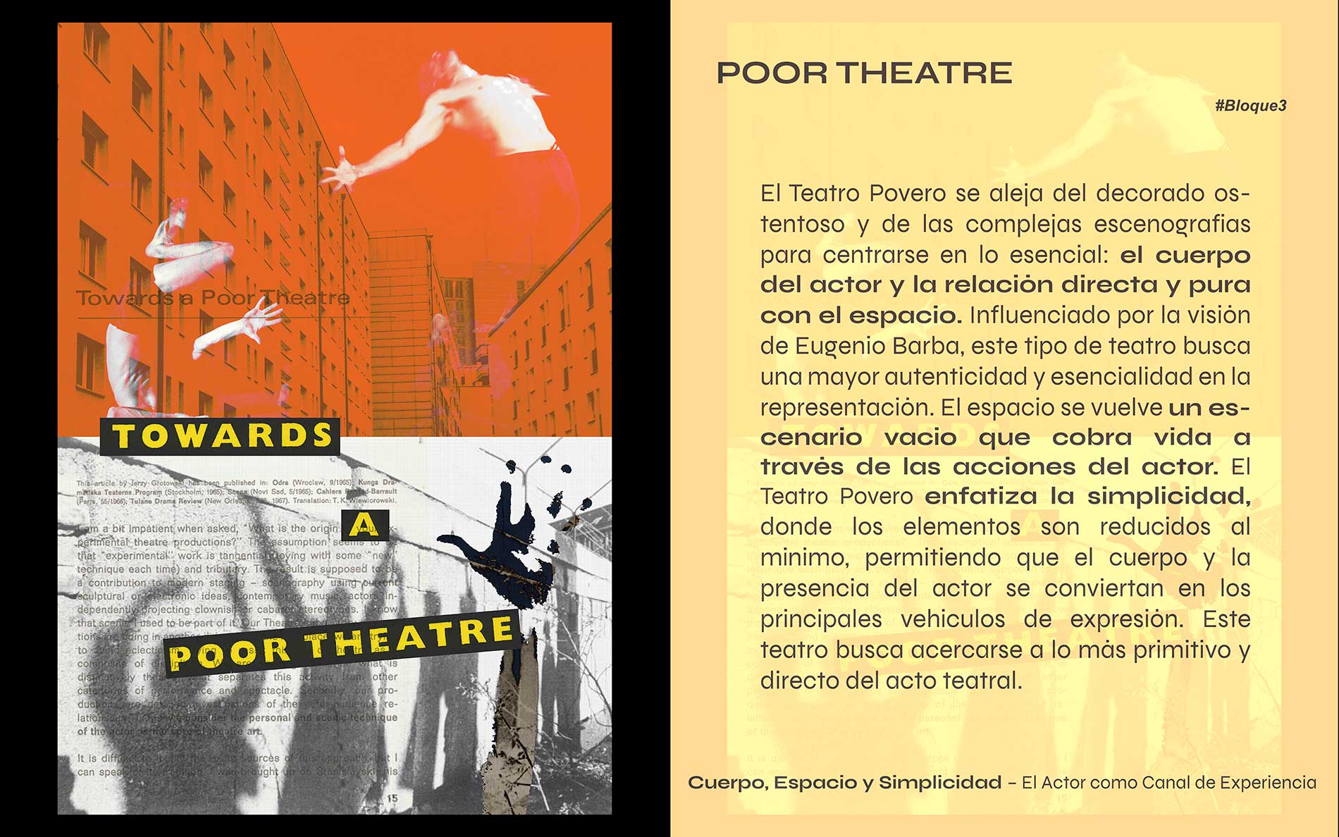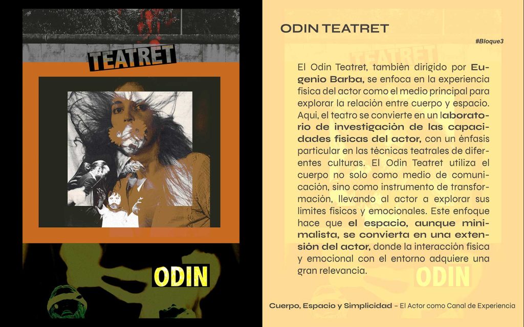 Protagonistas de los movimientos: Teatro Povero Jerzy Grotowski; Odin Teatret: Eugenio Barba, Roberta Carreri, Else Marie Laukvik.